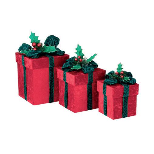 + FABR.XMAS GIFT BOX W/BOW TT RD/GRN 30,5CM