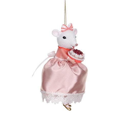 LADY MOUSE HOLD.CAKE ORN PNK/WH 11,5CM TR 18016
