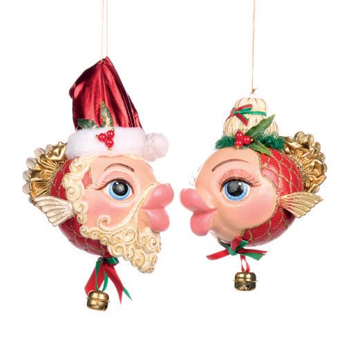 BABY MR/MRS CLAUS BIG PUFFER FISH ORN ASS/2 RD 16,5CM B 86303