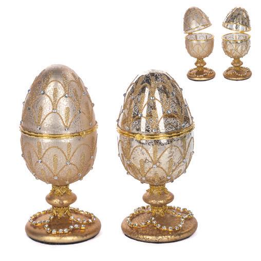 GLSS ANT.JEWEL EGG BOX TT ASS/2 GLD/CRM 23CM TR 19197