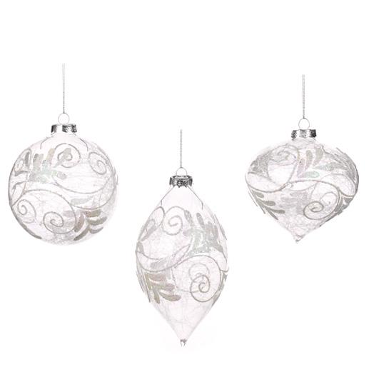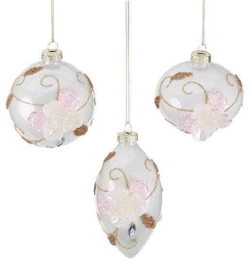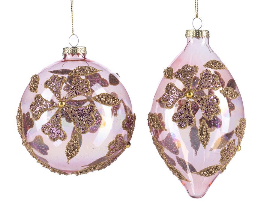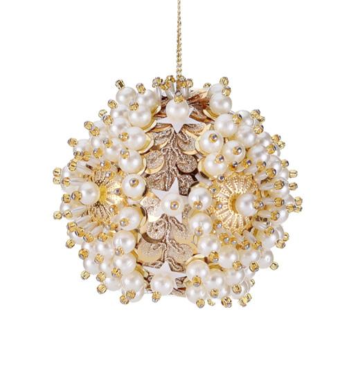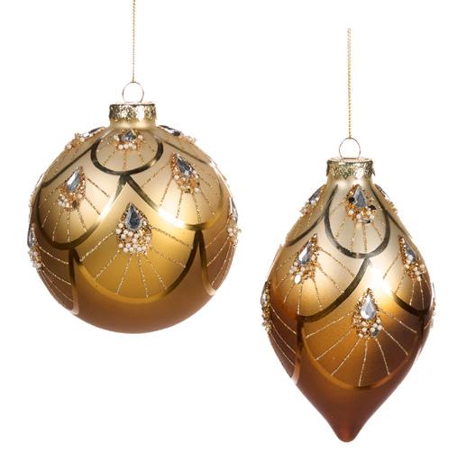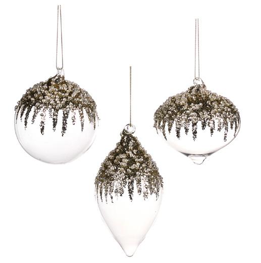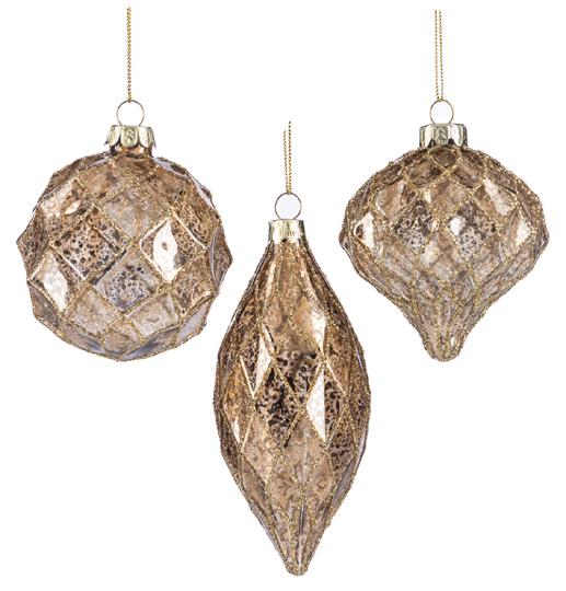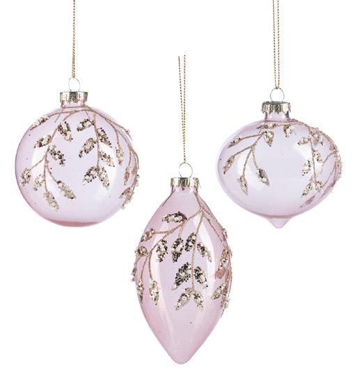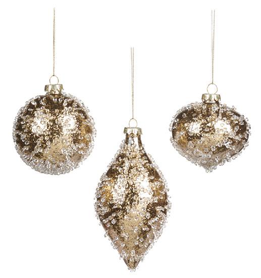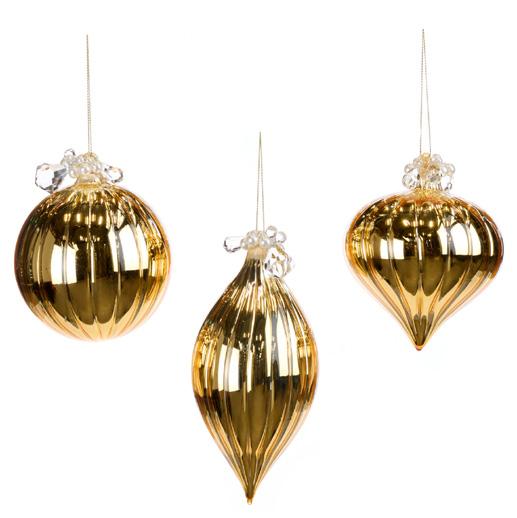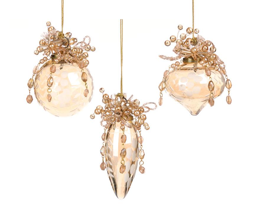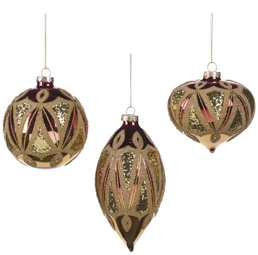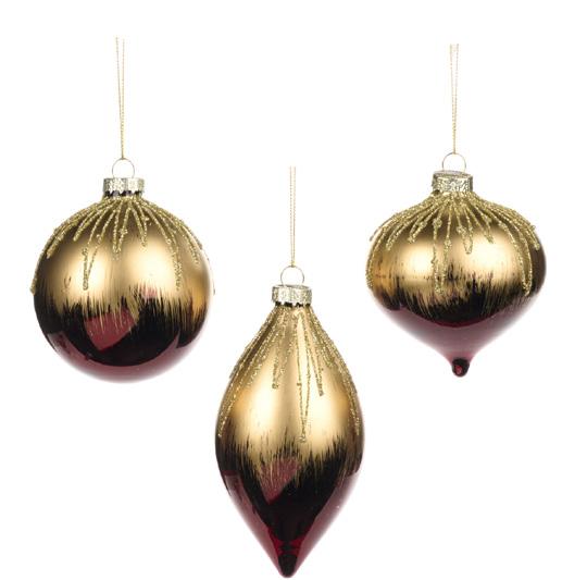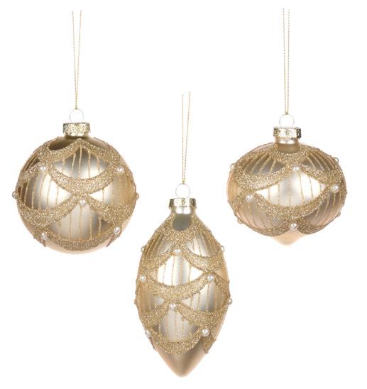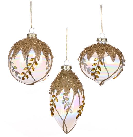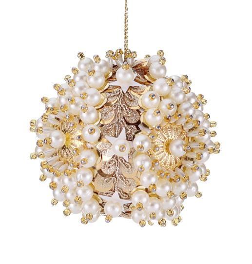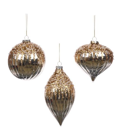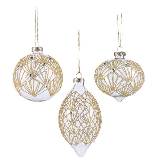 GLSS BEAD.LEAF/VINE BALL/ FIN.ORN ASS/3 RD/GLD 10CM P 28589