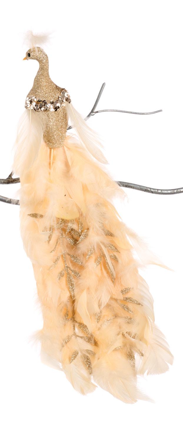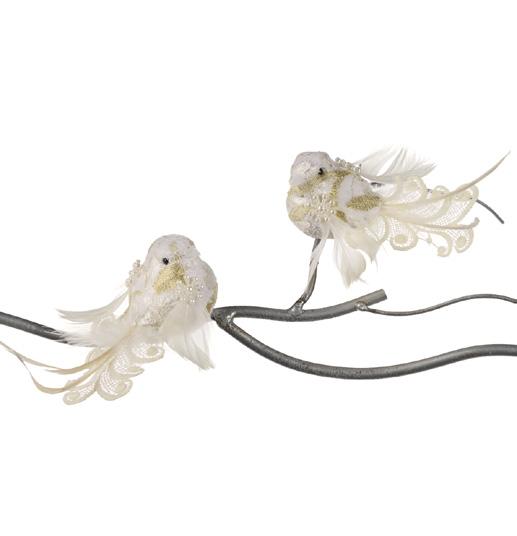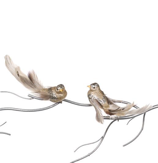 + FABR.PLUME IR.TINS. BIRD ON CLIP ASS/2 WH 18CM