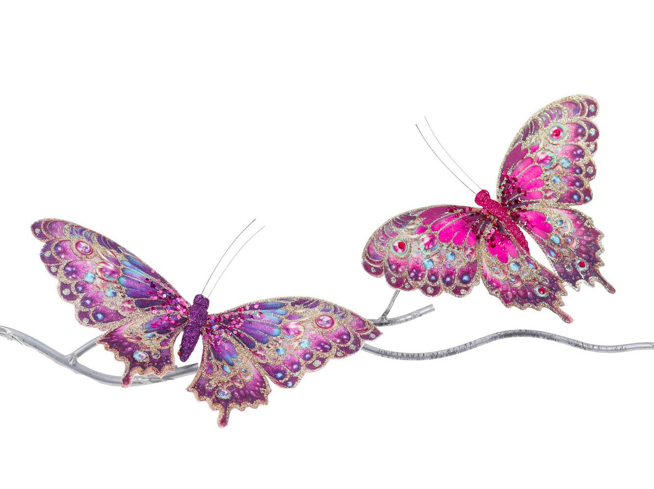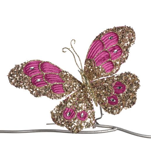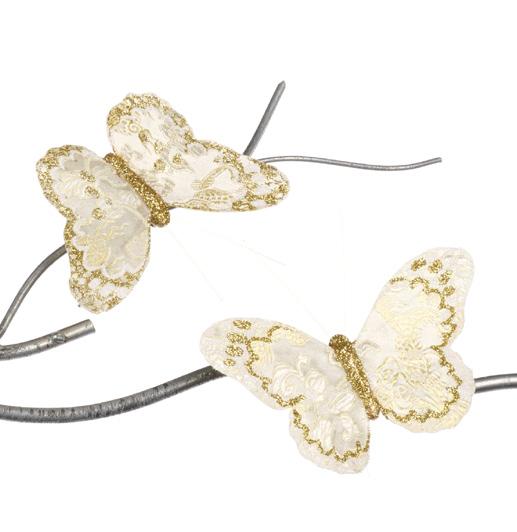 BROC.GLT BUTTERFLY ON CLIP ASS/2 CRM/GLD 12CM