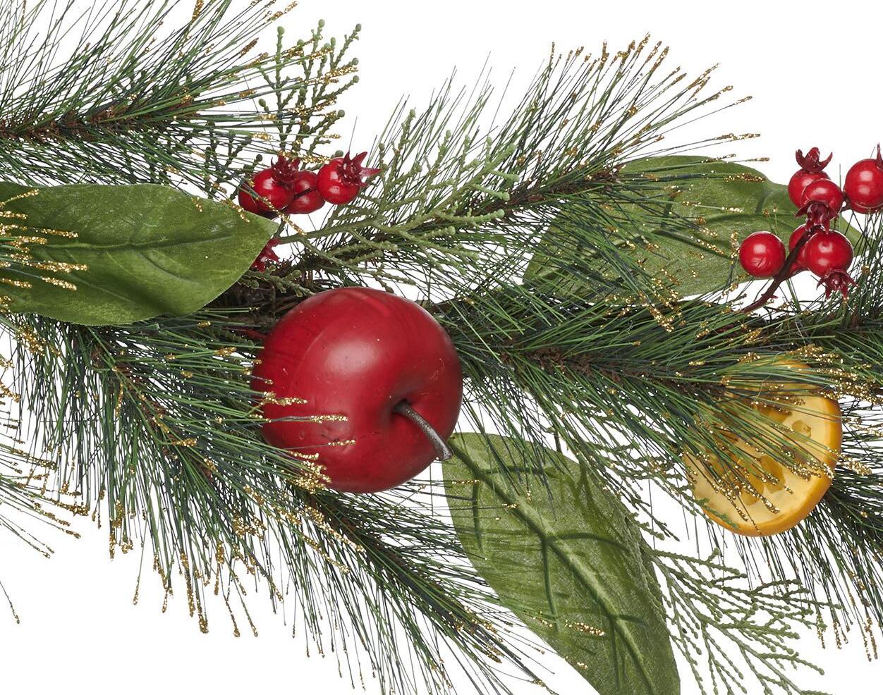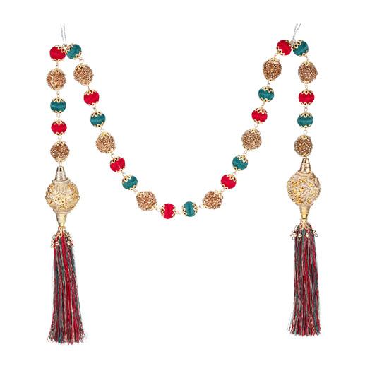 YARN BALL/BEAD.TASSEL GARLAND GRN/RD/GLD 105CM