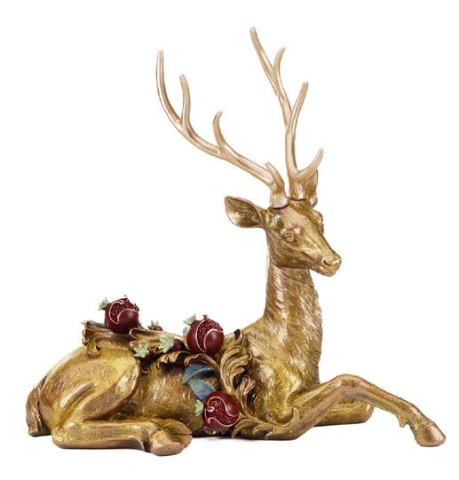 FABR.SWIRL LYING DEER W/ SADDLE TT CRM/GLD 39CM