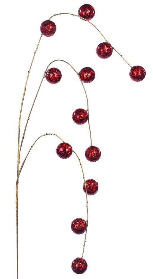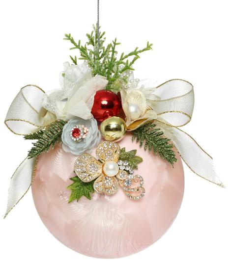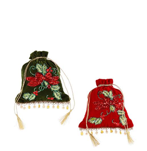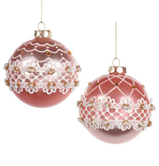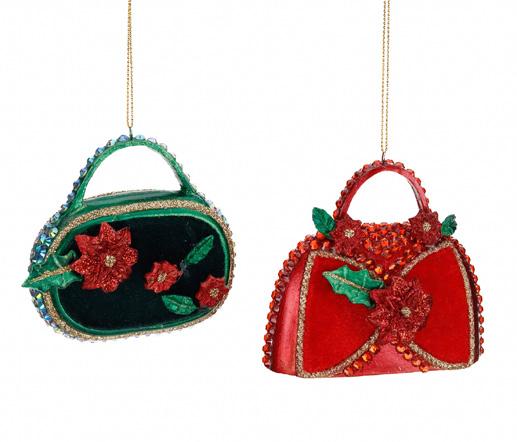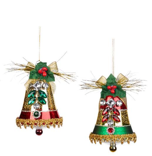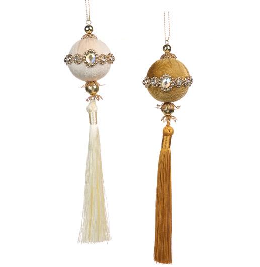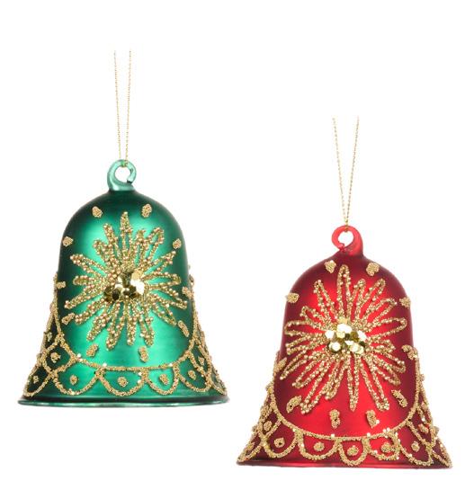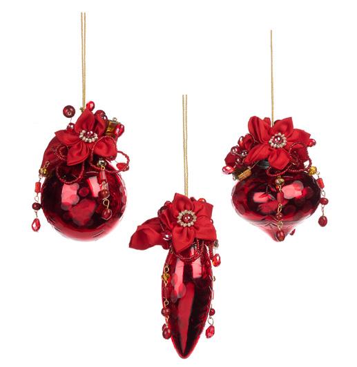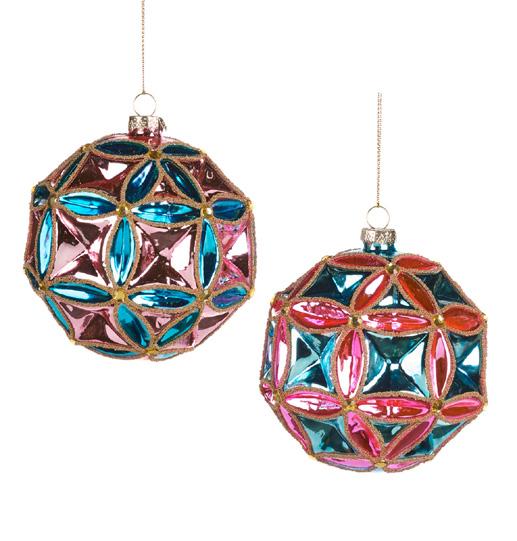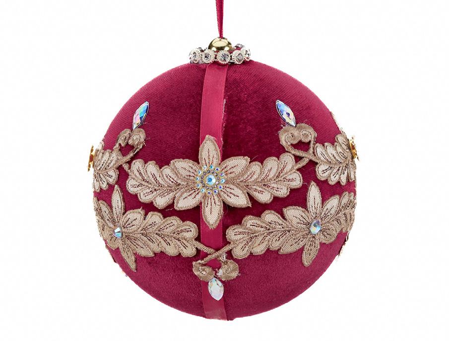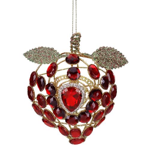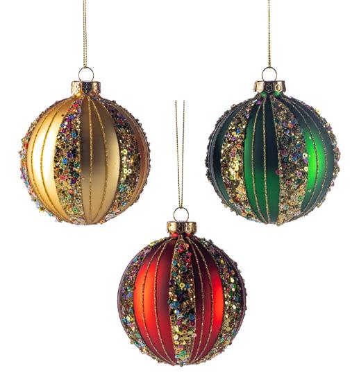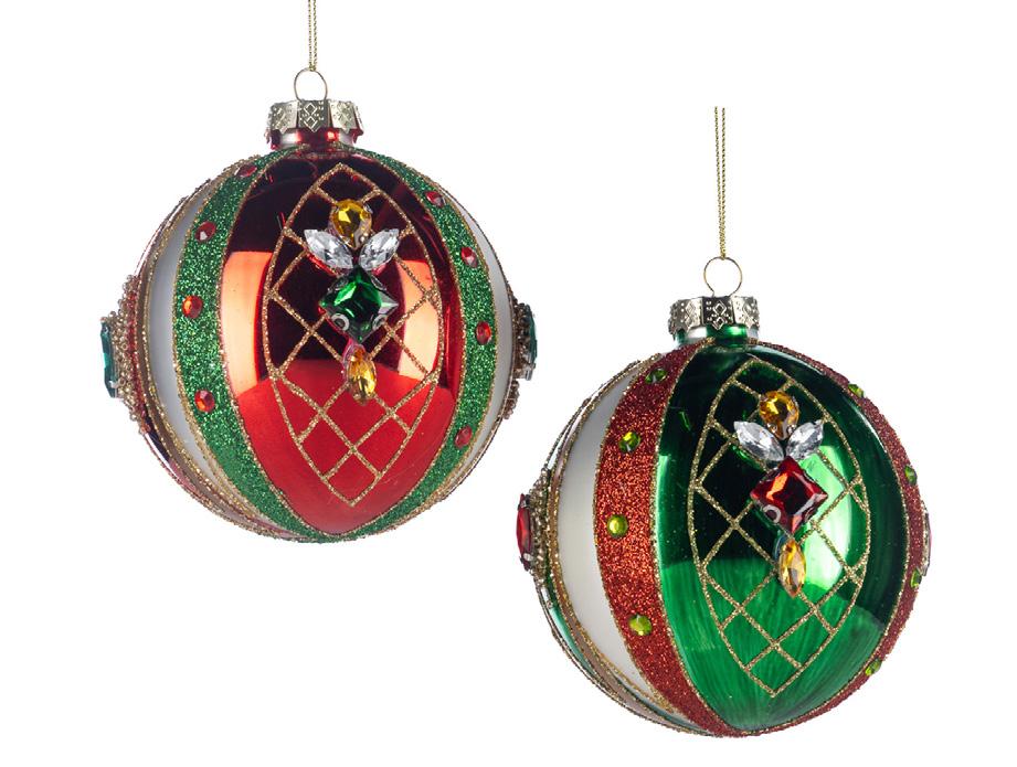 VELV.TART.JEWEL TRIM BALL ASS/2 RD/GRN 10CM
