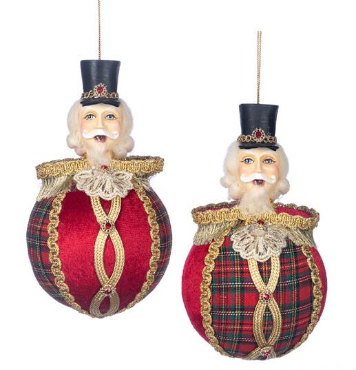 GLSS JEWEL NUTCRACKER HEAD ORN ASS/2 RD/WH 14CM BG 50110
