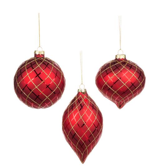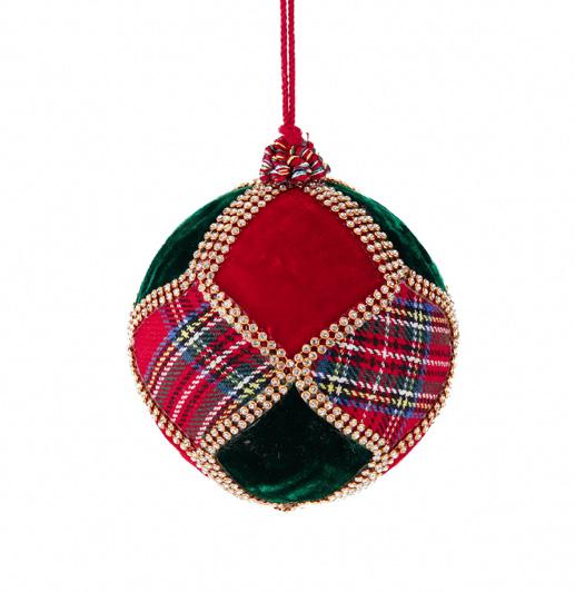 GLSS TARTAN BALL/FIN.ORN ASS/2 RD/GRN/BLU 10CM