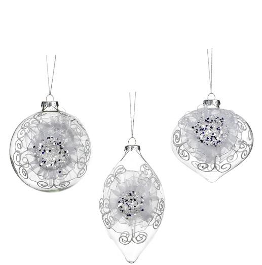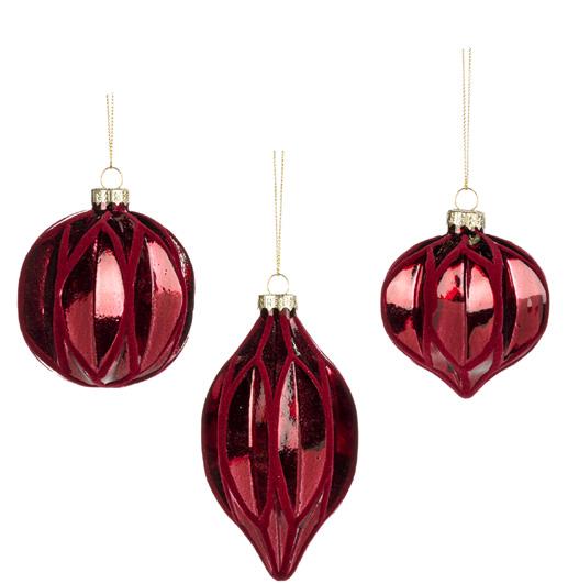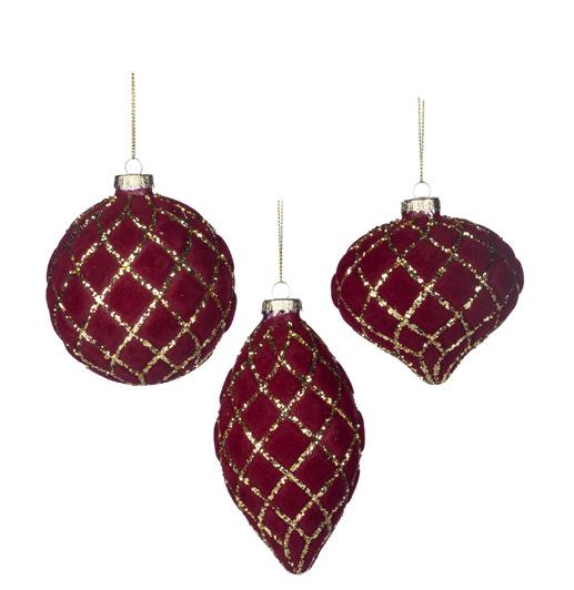 GLSS FLOCK.NET BALL/FIN. ORN ASS/3 RD/BURG 10CM