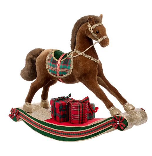 FABR.TART.ROCKING HORSE W/ GIFTS TT BRWN/GRN 68CM