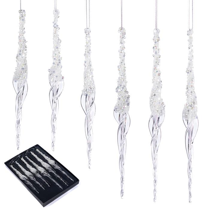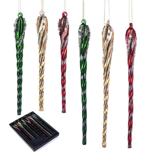 28322 GLSS PEARL ICICLE ORN BOX/6 RD/GRN/GLD 20CM/25CM