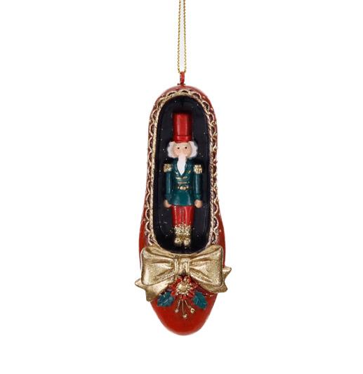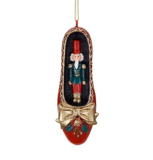 NUTCRACKER IN BALLET SLIPPER ORN RD/GLD 11CM MC 38397