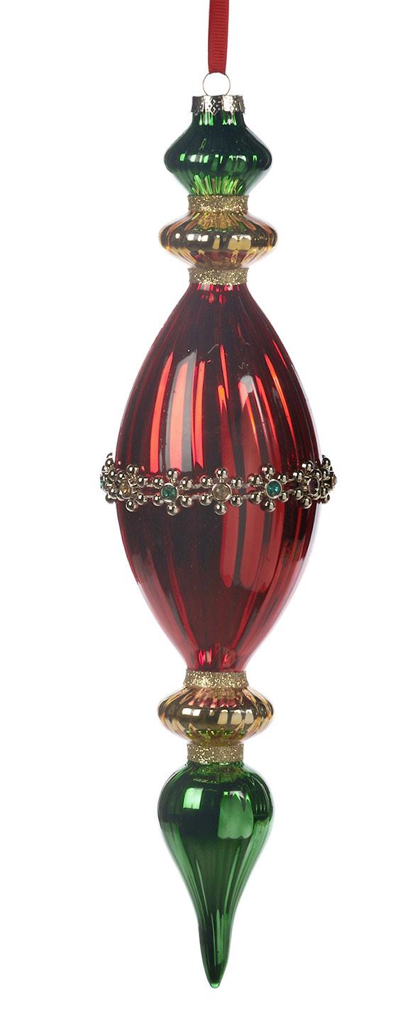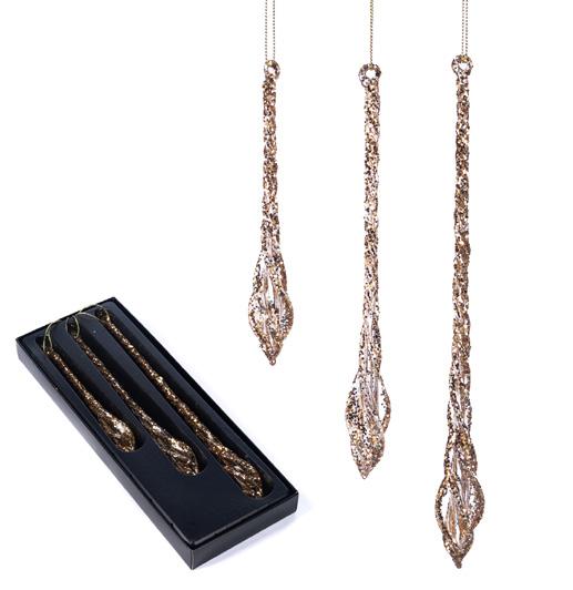 28453 GLSS JEWEL DROP ICICL.ORN ORN BOX/3 GLD/RD 20CM