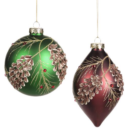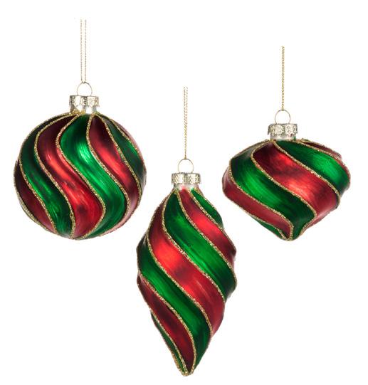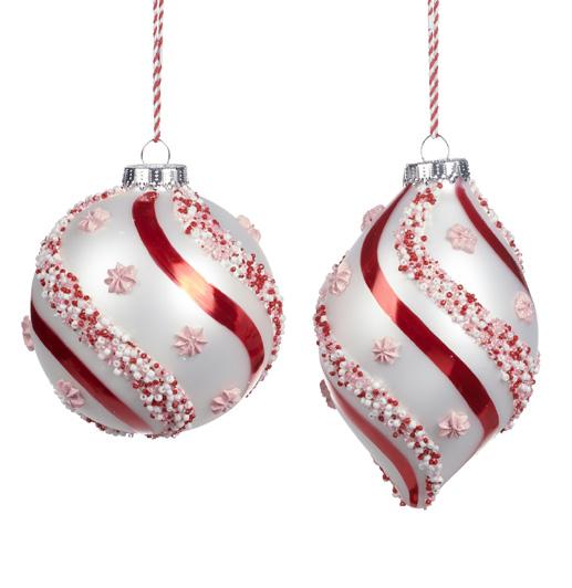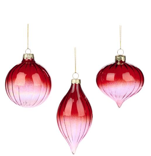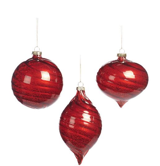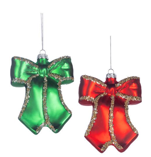 GLSS TART.BOW BALL/ONION ORN ASS/2 GRN/RD 10CM TR 19008