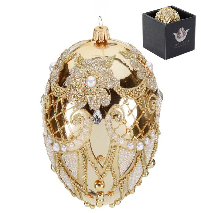 GLSS ANT.SWAG BALL/FIN.BOX ORN ASS/3 RD/GLD 10CM P 28526