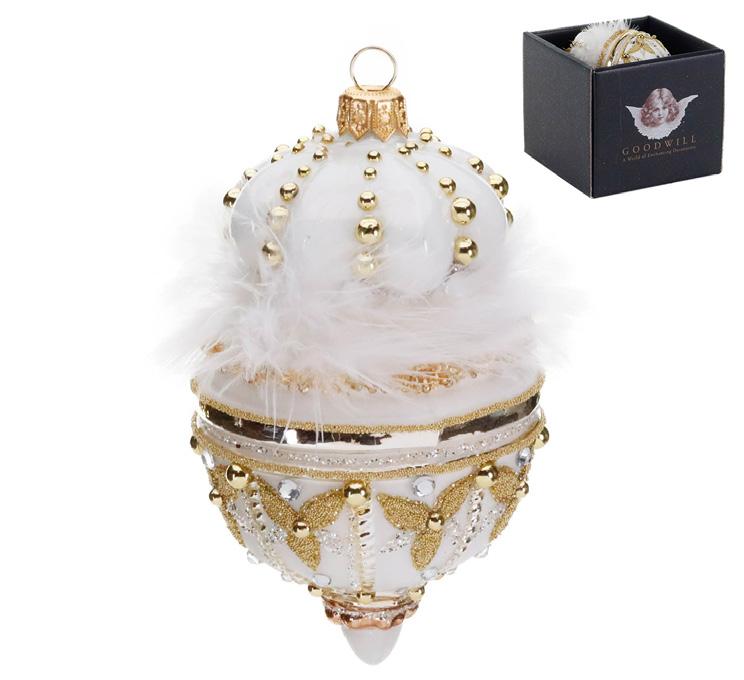 MR 36-54354 GLSS KINGS JEWEL FANCY FINIAL ORN WH 20,5CM