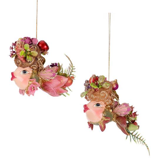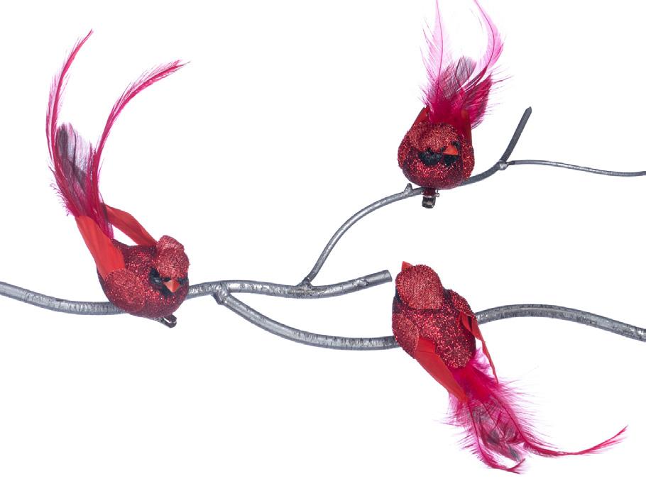 FABR.TART.BIRD ON CLIP ASS/2 RD/GRN 10CM