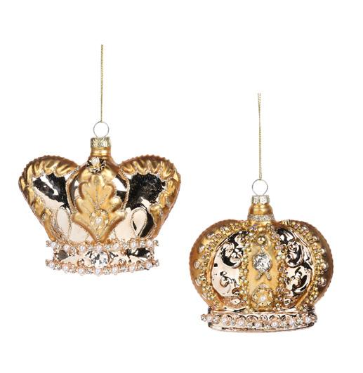 GLSS CROWN ICICLE ORN BOX/3 CLR/GLD 12/14/17CM