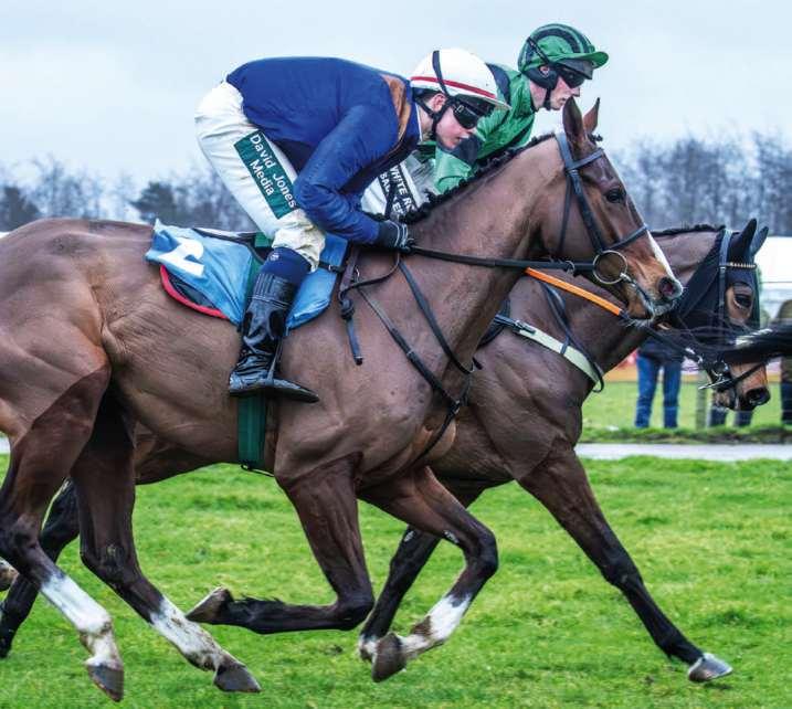 Theseconddivisionwaswoninmoredecisive fashion with Pyleigh Master showing a good turn of foot to draw clear from Dave’s Sister ridden by Toby McCain-Mitchell. The winner, a smart looking son of Blue Bresil, was bred by Robert and Tigger Pudd from their mare Pyleigh Lady who won two Hurdles for them. Ridden by Ella Herbison the gelding is a half brother to the prolific Go Steady the winner of eight races for Dan Skelton. He will be one to watch out for when he takes on fences in due course