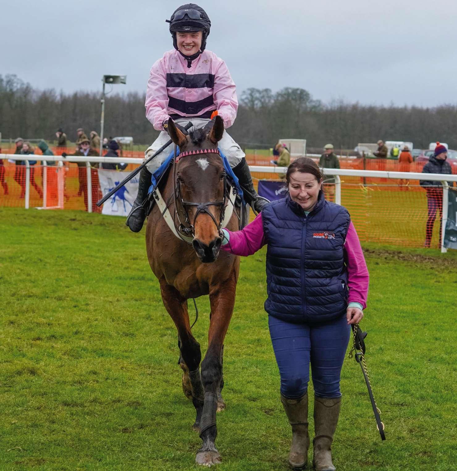 There was somewhat of a surprise winner in the Martin Haskett Agricultural Contactors Ladies Conditions race for riders who had ridden fewer than 20 career winners. After long term leader Mix of Clover unseated his rider, Isabel Lovat, at the third last the race developed into a match between L’Air Du Vent, ridden by Megan Bevan and Nickolson, the mount of Amber JacksonFennell with the former staying on stronger to record a first training success for Jemma Sargent who is one of the Barn Managers for Joe Tizzard’s National Hunt yard This was unexpected as the gelding is not known to appreciate softer going as all of his best form is on a faster surface. Jemma said ‘I look after him in one of Joe’s satellite yards and do all of the work with him in my break’ She added that she has not resumed
