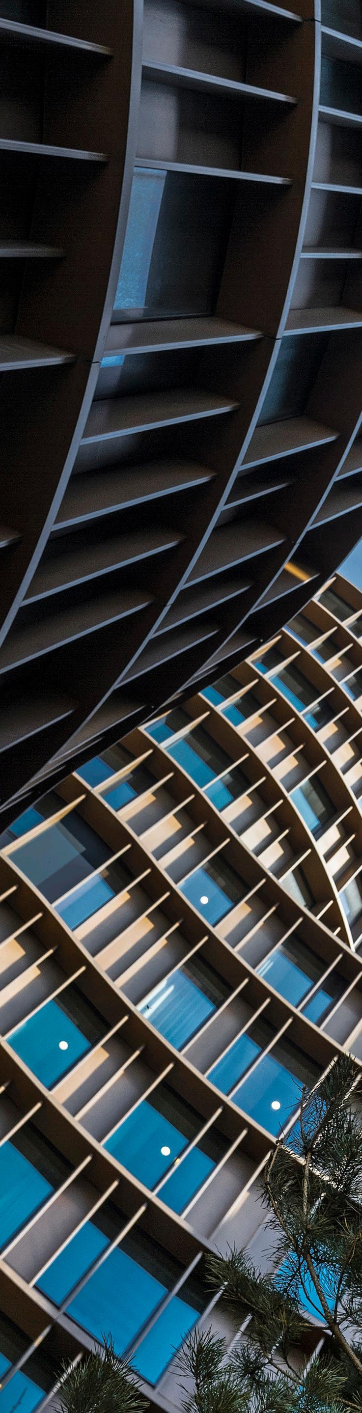The main concept supports an exclusive yet playful and unpretentious idiom that corresponds with the area’s identity as Copenhagen’s historic entertainment district. On the ground floor, restaurants, cafés and shops offer themselves to the public. Office spaces with views of the city are located behind the rich copper-colored facades and brise soleil reliefs. The circular facades provide the work spaces with an abundance of daylight, all overlooking the city.