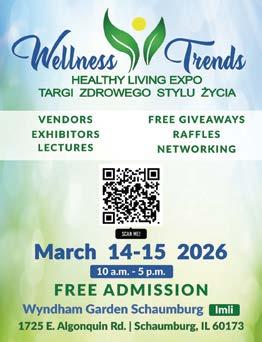 Chicago-area residents can explore healthy living and sustainable choices at the Wellness Trends Healthy Living Expo Targi Zdrowego Stylu Życia, taking place from 10 a.m. to 5 p.m. on March 14 and 15 at its new location, the Imli Conference Center at Wyndham Garden Schaumburg. This inspiring, immersive, twoday event returns for its fifth edition to showcase eco-friendly health innovations and offer valuable wellness insights through expert-led seminars and vendor booths.