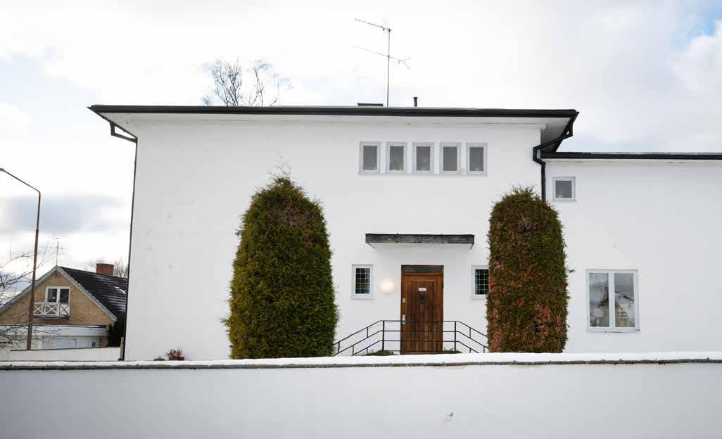 Josephine, 36, och Rickard, 39, slår sig ner med varsin kopp kaffe i det rymliga köket. Allt är rymligt i den vita villan i Åseda från 1936, tillbyggd på 1940-talet. Och det var så de ville ha det när de flyttade in för drygt ett år sedan. 260 kvadratmeter på två våningar plus 140 i källarplan innebär många ytor och vrår. Den stora vitputsade villan, som kallas den italienska villan, byggdes 1936. Runt trädgården löper en vitputsad mur som bidrar till medelhavskänslan.