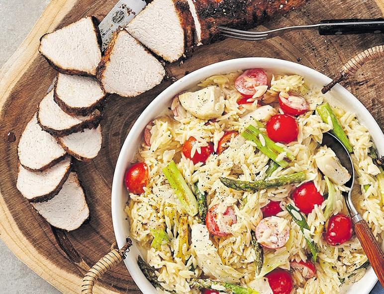 Servera gärna med det fräscha tillbehöret risoni med grönsaker och getost.