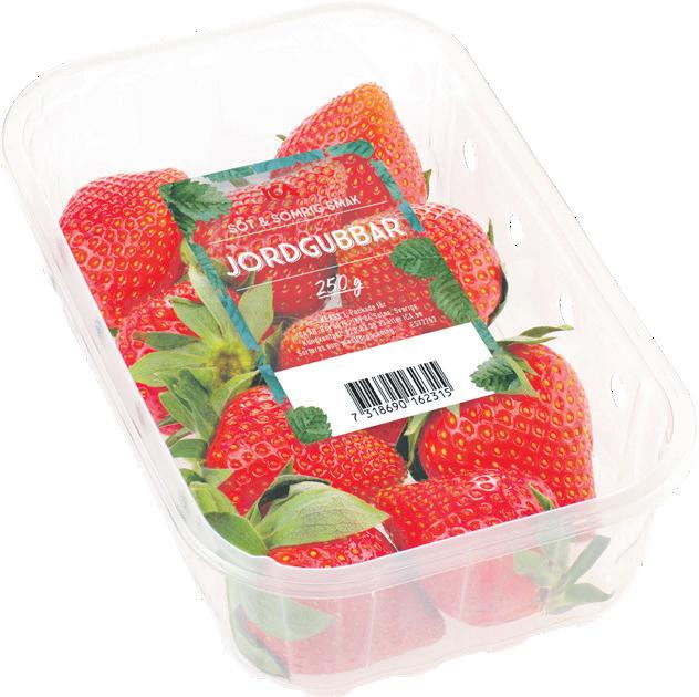 Jordgubbar i ask ICA. Spanien. 250 g. Klass 1. Jfr pris 100:00/kg. Lime Brasilien. 75-90 g. Klass 1. Jfr pris 27:78-33:33/kg.