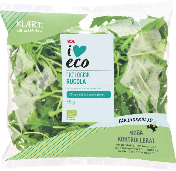 Ekologiska sallater i påse ICA I love eco. 65 g. Jfr pris 223:08/kg.