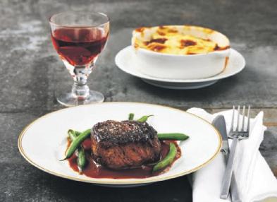 6.Servera med t.ex kokta haricots verts, potatisgratäng och rödvinssås.