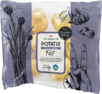 Fast potatis i påse ICA. Sverige. 1,2 kg. Klass 1. Jfr pris 10:42/kg.