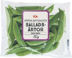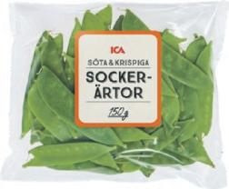 Socker-, salladsärtor, haricots verts ICA. Peru/Kenya/Guatemala. 150 g. Klass 1. Jfr pris 133:33/kg.