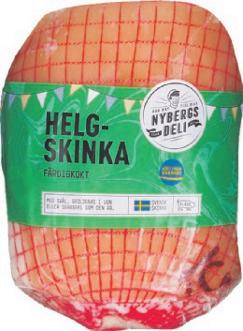 Helgskinka Nybergs deli. Ursprung Sverige. Ca 2 kg. Färdigkokt. Med svål. Jfr pris 49:90/kg. Max 2 köp/hushåll.