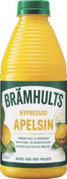 Brämhults. 850 ml. Flera olika sorter. Gäller ej lemonad, blåbär/svarta vinbär, jordgubb/lime, nypressat äpple, hallon, apelsin/lime. Jfr pris 38:24/liter + pant. Max 1 köp/hushåll.