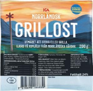 Norrländsk grillost ICA. 200 g. Jfr pris 100:00/kg.
