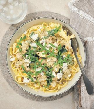 Fettuccine med zucchini och fetaost