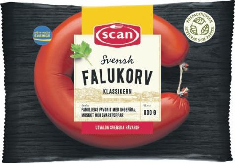 Falukorv Scan. 800 g. Jfr pris 37:50/kg. Max 2 köp/hushåll.