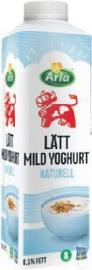 Mild yoghurt Arla. 1 kg. Vanilj och Naturell. Gäller ej laktosfri, ekologisk. Jfr pris 15:00/kg.