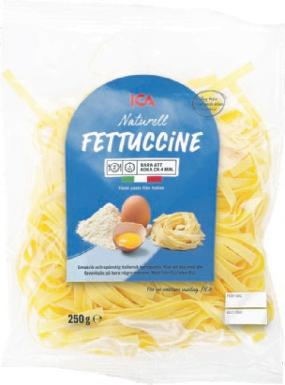 Färsk pasta ICA. 200-250 g. Gäller ej fylld, glutenfri. Jfr pris 40:00-50:00/kg.