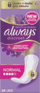 Bindor, trosskydd storpack, inkontinensskydd Always, Always discreet. 14-60 pack, 20-24 pack. Jfr pris 0:56-2:78/st.