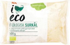 Ekologisk surkål i påse ICA I love eco. Nederländerna. 500 g. Jfr pris 30:00/kg.