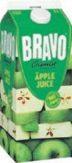 Bravo. 1,75-2 liter. Gäller ej apelsinjuice eller fruktdryck. Jfr pris 19:50-22:29/liter.