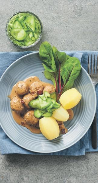 Köttbullar i löksås med gurka