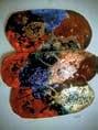 Pigmenten använder hon som färg, eller så blandar hon dem med akrylfärger för att skapa nya nyanser. Det mer grovmalda skapar hon en tjock textur av, som läggs i flera lager på målarduken för att skapa struktur.