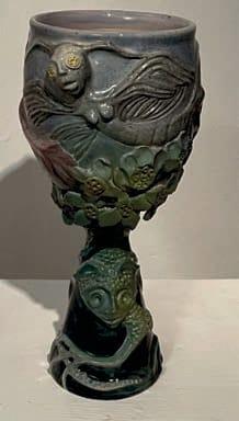 Men upplevelsen av det existentiella och andliga behöver inte bottna i religionens läror och traditioner. Den kan lika gärna uppstå ur den fysiska verklighet vi har framför oss. Där kan det mest handfasta, praktiska och rentav vardagliga spela en avgörande roll. Keramikerns lera, skulptörens snidade trä och målarens pigment i mättade nyanser av ultramarin och karmosinrött bär sin egen historia och mening.