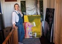 Ann-Margrete Carlén jobbar med att göra färdigt allt till konstrundan. Hennes sista i ateljén i Berggrenska gården. FOTO: SPRISSE NILSSON