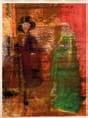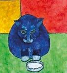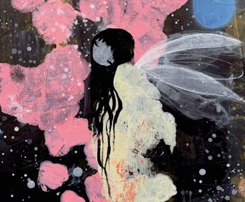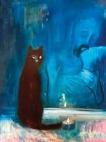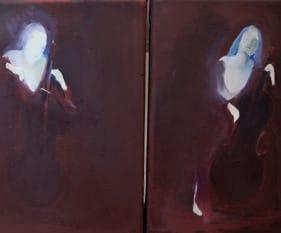 Hon jobbar mycket med svart. Mörka målningar där figurer framträder i det mörka. Det är så pass genomgående att besökare dragit slutsatsen att konstnären bakom verket är deprimerad. Det är hon inte alls.