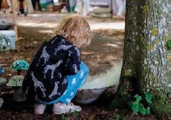 Hon mortlar sand, lera, sten, kol och aska från bland annat Tobisvik och Knäbäckhusen, till ett pulver, grus eller stenkross.