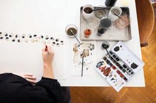 – Det är avslappnande för hjärnan. Jag släpper taget och faller helt tillbaka på min intuition och låter saker och ting flöda. Och när jag sen ser hur bilden tar form blir jag väldigt exalterad. Samtidigt tycker hon att det finns det något väldigt tillfredsställande i att få till en realistisk målning – när en kopp blir precis rund eller bladen på en orkidé får rätt lyster.